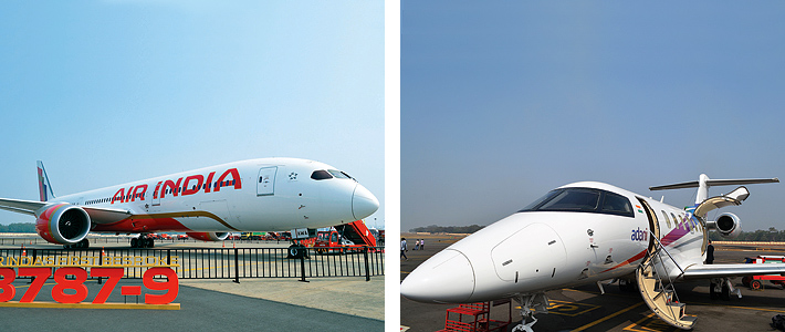 (Left) AIR INDIA B787-9; (Right) PILATUS PC-24 OF ADANI