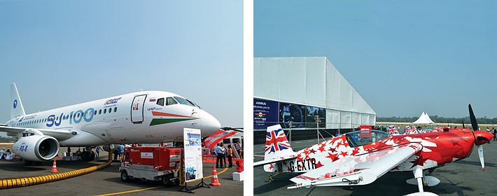 (Left) SUPERJET SJ100; (Right) MARK JEFFERIES GLOBAL STARS AEROBATIC TEAM FROM UK